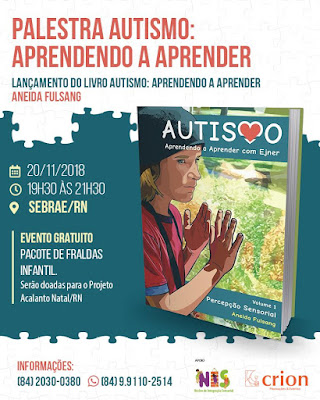 Antes do lançamento do livro, Aneida Fulsang participa de três palestras em Natal sobre o tema “Percepção Setorial”. Duas na terça-feira (20), a primeira às 9h no auditório do Hemonorte para os pais e terapeutas do Centro de Reabilitação Infantil; e a segunda, às 19h30, no auditório do Sebrae para o publico em geral. Já no dia 22, à tarde, ela conversa com os profissionais e integrantes da Associação dos Pais e Amigos dos Autistas do Rio Grande do Norte, às 14h30, na sede da instituição em Cidade Satélite.